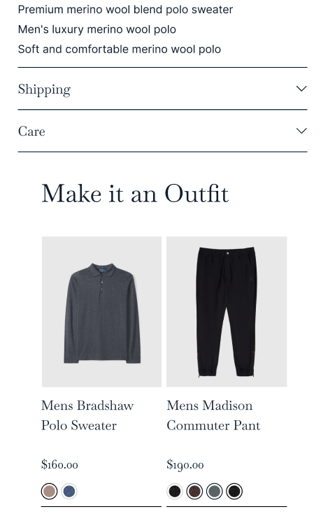 Featuring a "Complete the Look" section on product pages encourages customers to purchase bundles. It simplifies the shopping experience by showing how products can be paired together, increasing the likelihood of multiple item purchases and a greater AOV should result.